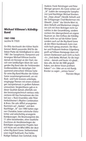 '…and thank you, Michael, for all inspiration …then and now. I believe that all those involved in KBB (KölnBigBand) had their profit from your vision!'