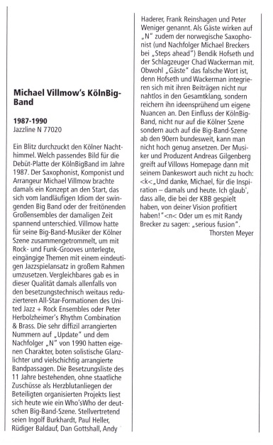Michael Villmows KBB (KölnBigBand) achieved international acclaim during the eleven years of its existence.