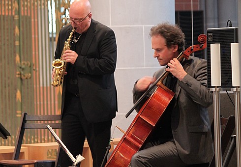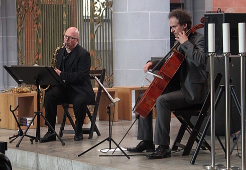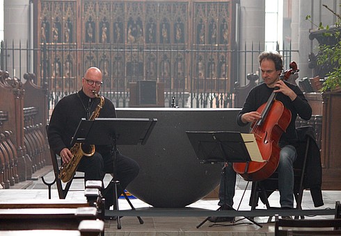 The great music of Johann Sebastian Bach inspires Gunther Tiedemann and Michael Villmow to develop new ideas. Within the Kreuzüber Bach (Crossover Bach) project, the duo plays with the topics in Bach’s cello suites no. 1 in G major and no. 2 in D minor, juxtaposing original and personal interpretations – holding Bach in flux. The programme is coloured by their own compositions, along with the joy of intimate dialogue, of the sound of church spaces, of the possibilities offered by cello & saxophone and of an effervescent ping-pong of musical ideas. – The ‘Kreuzüber Bach’ CD is available from CCnC and can be downloaded from most well-known sales Websites! – www.ccnc.de